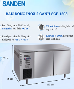 Bàn Mát/Bàn Đông Inox Sanden SCC-1263/SCF-1263 Dung Tích 235 Lít, Sâu 600mm