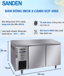 Bàn Mát/Bàn Đông Inox Sanden SCC-1563/SCF-1563 Dung Tích 320 Lít, Sâu 600mm