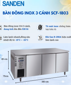 Bàn Mát/Bàn Đông Inox Sanden SCC-1863/SCF-1863 Dung Tích 420 Lít, Sâu 600mm