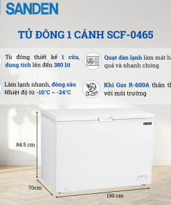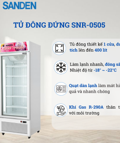 Tủ đông Sanden SNR-0100 với thiết kế đứng 1 cánh nhỏ gọn và dung tích 100 lít được ứng dụng rộng rãi trong nhiều ngành nghề khác nhau nhờ khả năng làm lạnh nhanh, tiết kiệm điện và vận hành ổn định.