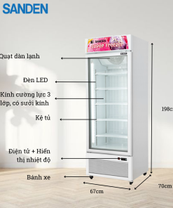 Tủ đông Sanden SNR-0505 với thiết kế đứng 1 cánh nhỏ gọn và dung tích 100 lít được ứng dụng rộng rãi trong nhiều ngành nghề khác nhau nhờ khả năng làm lạnh nhanh, tiết kiệm điện và vận hành ổn định.