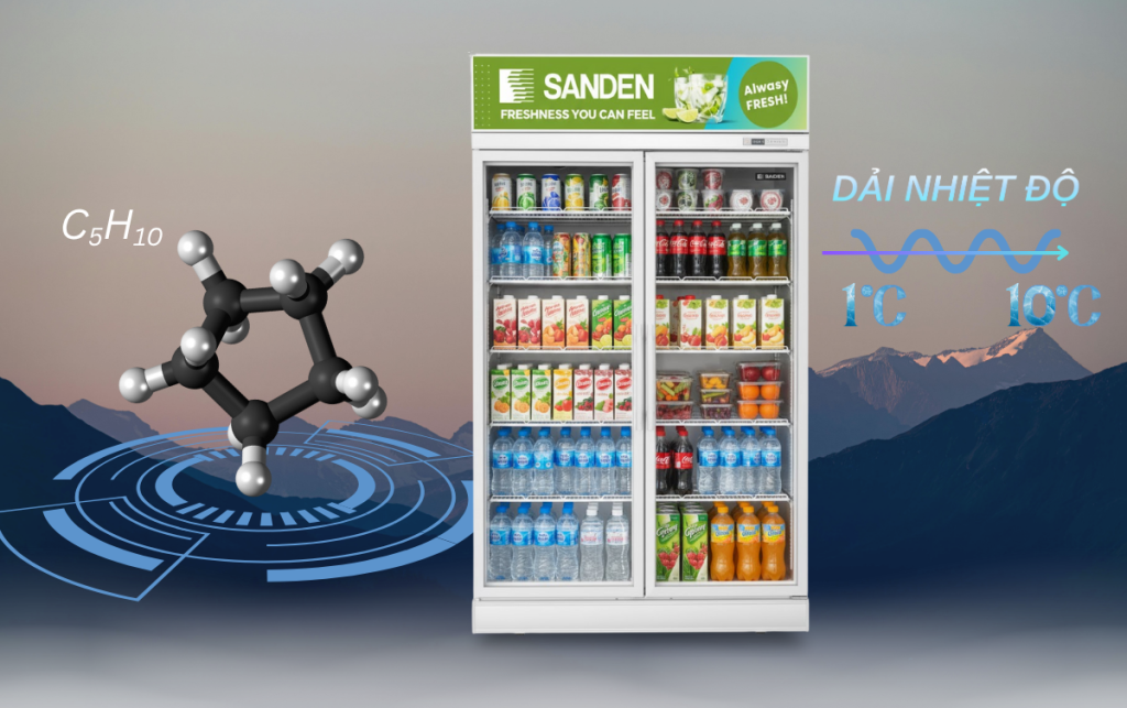Tủ mát Sanden SPM-1200C sử dụng gas R-290 thân thiện môi trường, không gây hại tầng ozon, góp phần bảo vệ môi trường sống xanh và giảm thiểu khí nhà kính. Gas R-290 cũng có hiệu quả làm lạnh cao, vận hành êm ái, an toàn cho sức khỏe người dùng và tiết kiệm điện năng.